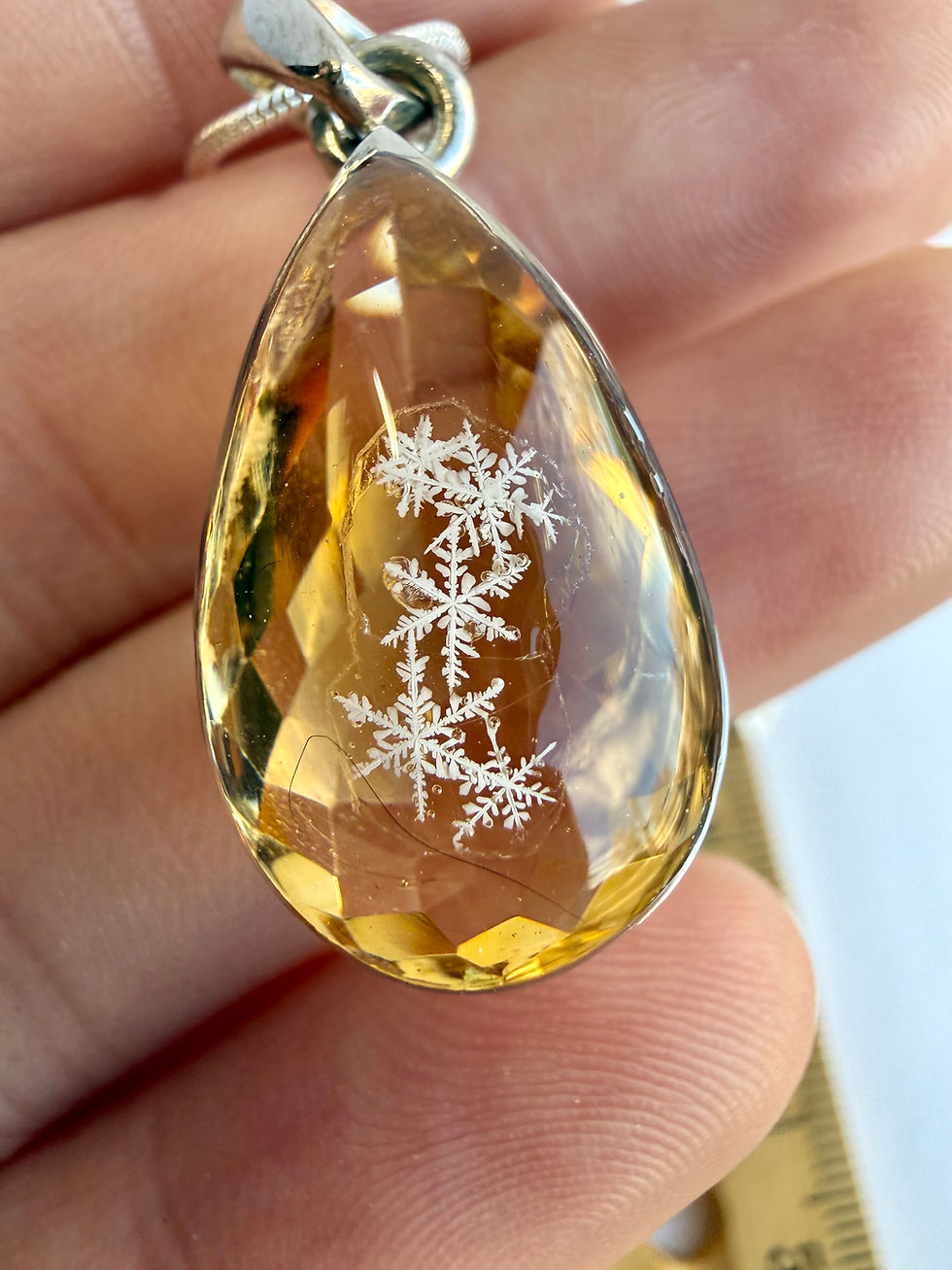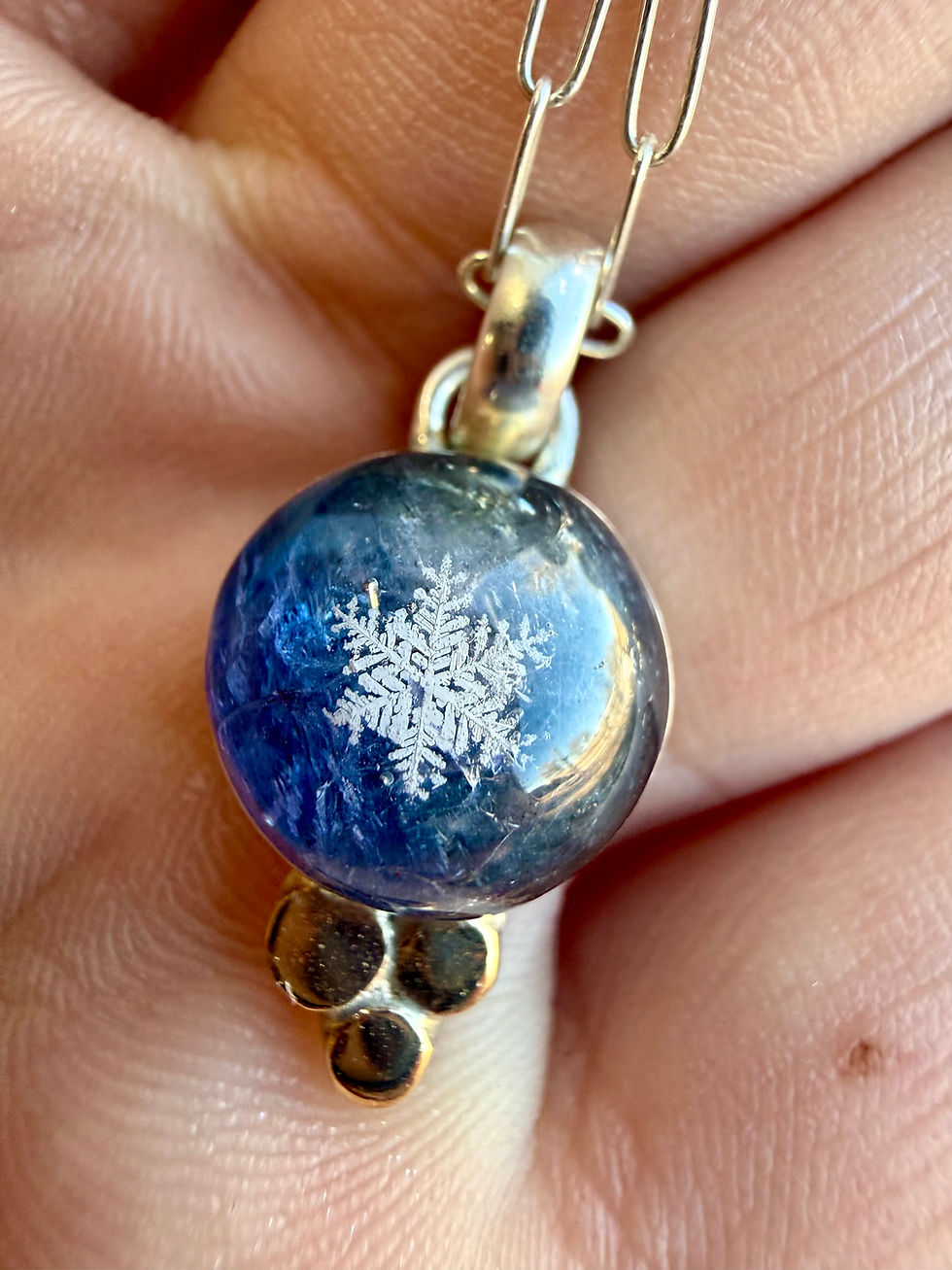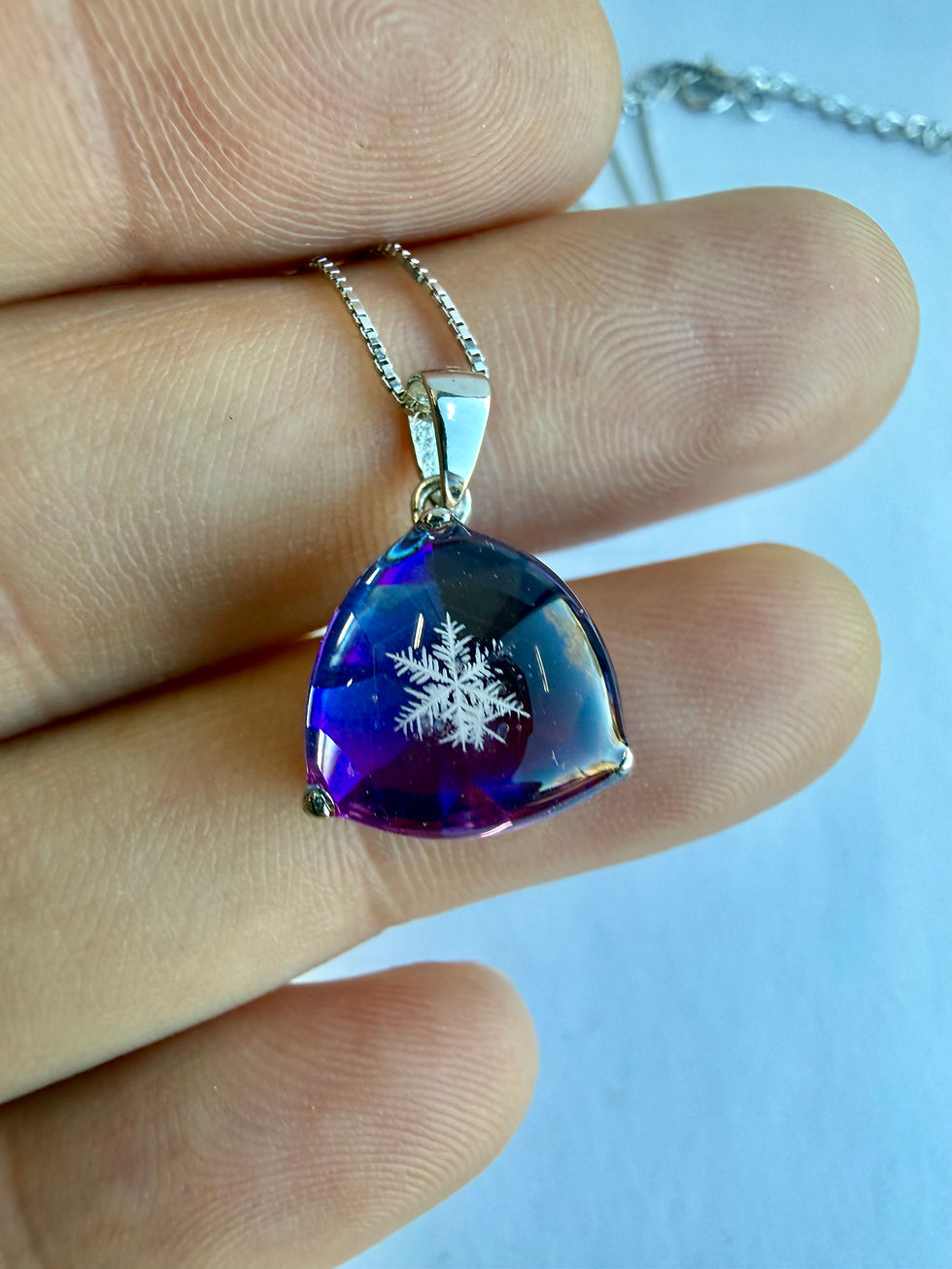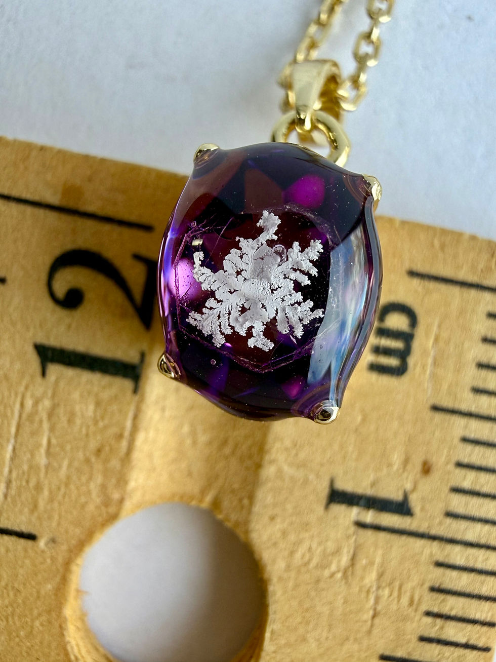 Pendant-10K Solid Gold/Vintage Glass/Preserved Snowflake