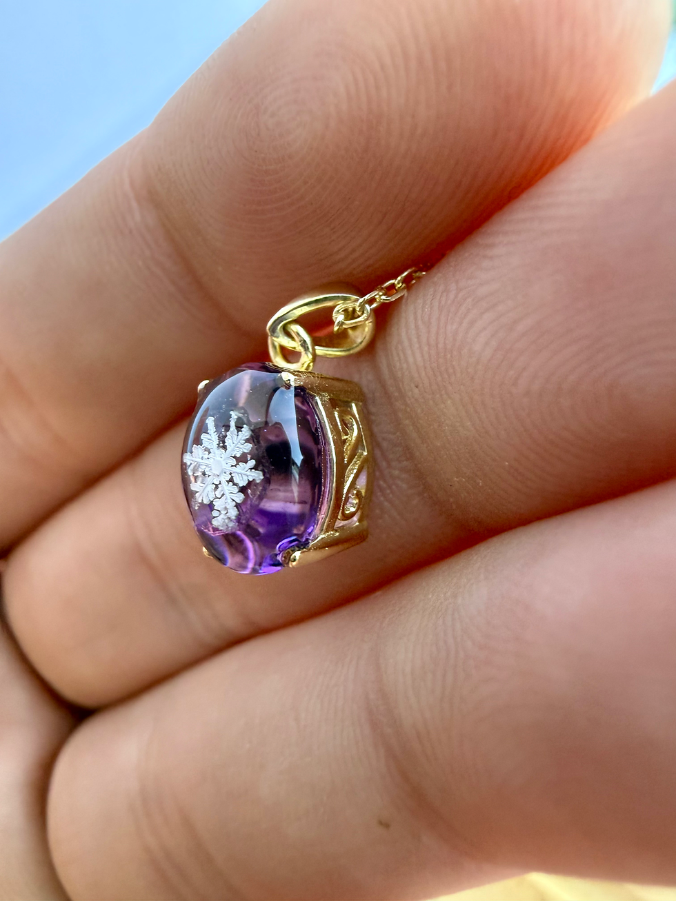Pendant-14K Solid Gold/Amethyst/Preserved Snowflake