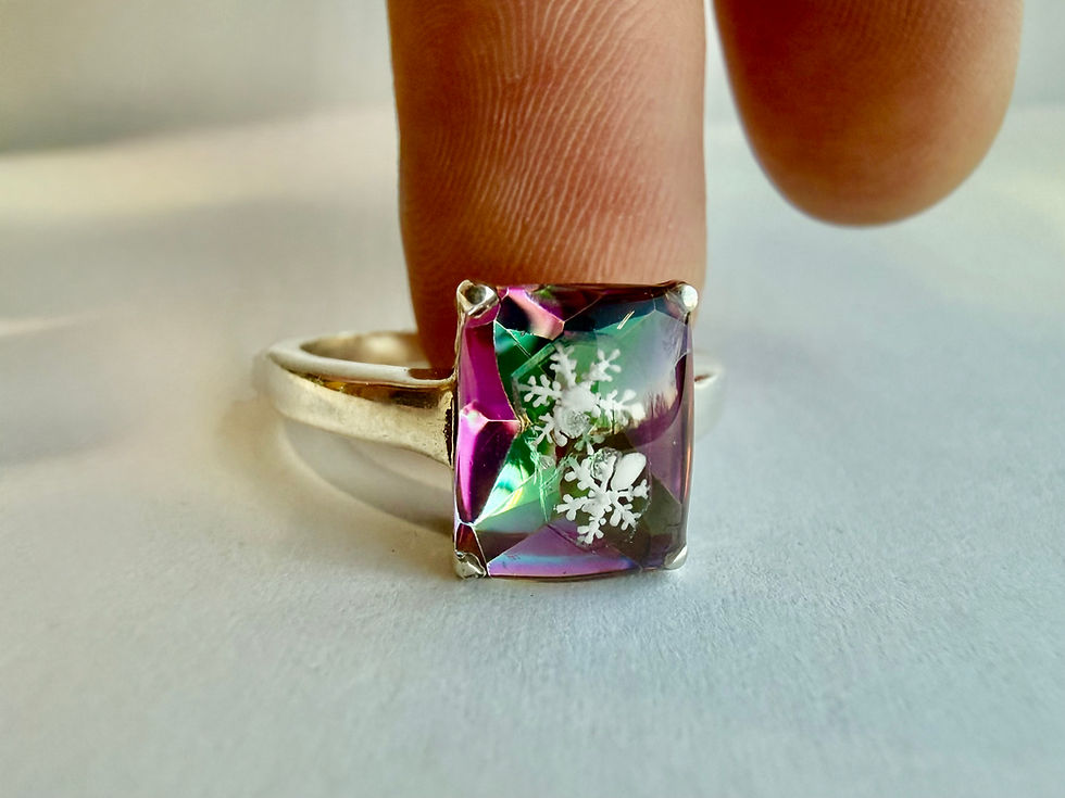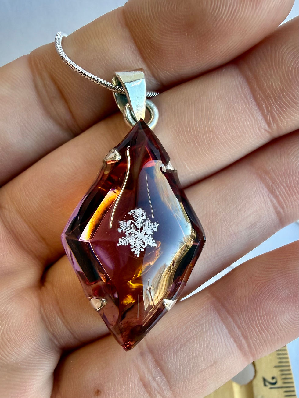 Pendant-14k solid gold/Rhodolite Garnet/Preserved Snowflake