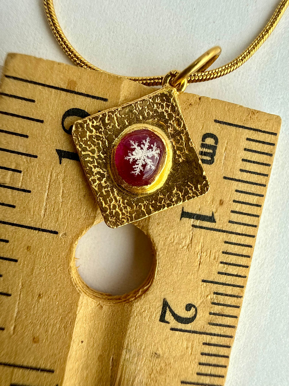 Pendant-18k solid gold/Ruby/Preserved Snowflake